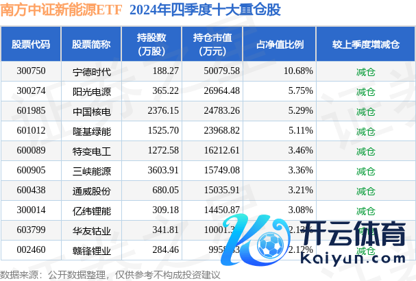 南边中证新动力ETF为指数型-股票基金,字据最新一期基金季报闪现,该基金金钱建树:股票占净值比99.9%,无债券类金钱,现款占净值比0.12%。基金十大重仓股如下:
